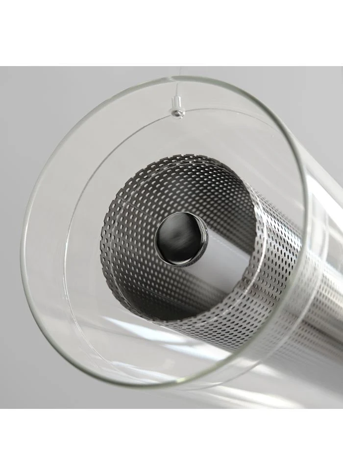 在金屬網孔與透明玻璃層之下,隱藏著白色壓克力管包覆的內建 LED 光源,能均勻散射光線,營造柔和溫暖的光暈,並進一步突顯多層次結構的深度與個性。