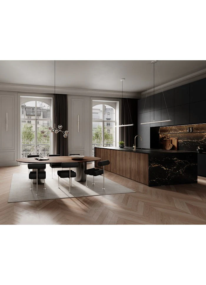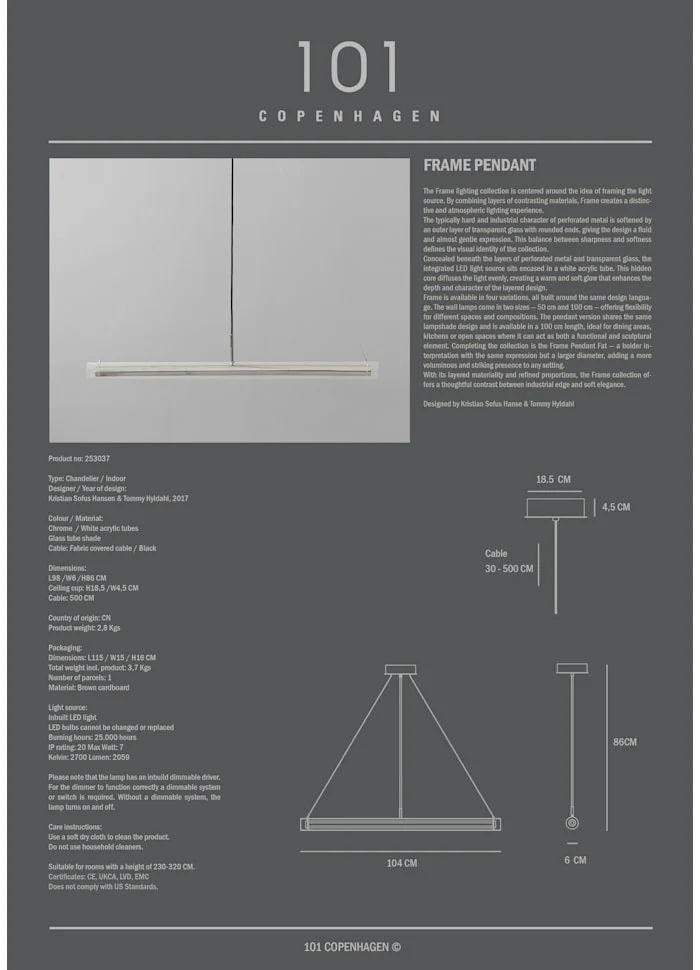 壁燈有兩種尺寸50cm與100cm,可靈活應用於不同空間與組合。吊燈沿用相同燈罩設計,提供104 和 114 cm長度,特別適合餐廳、廚房或開放式空間,既能滿足功能性,也能成為雕塑般的焦點。Fat大直徑款則更具份量感的演繹,以相同語彙放大直徑,為空間增添更強烈的存在感。
