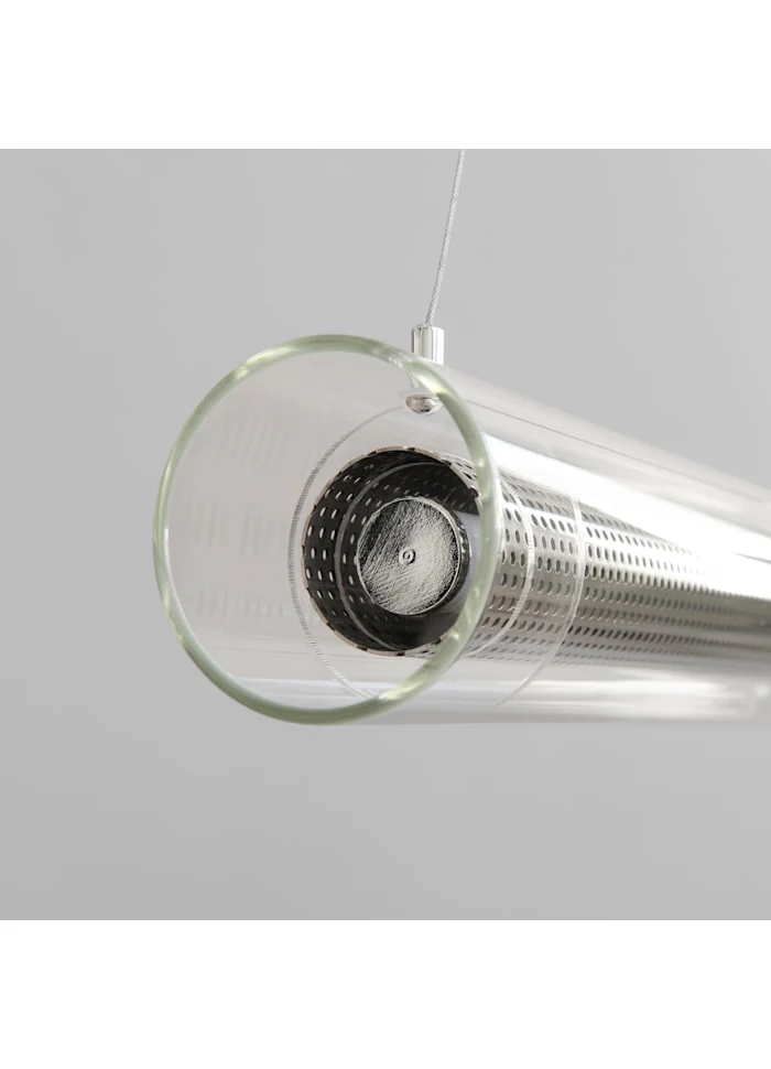 在網孔金屬與透明玻璃層之下,隱藏著白色壓克力管包覆的內建LED 光源,能均勻散射光線,營造出柔和暖意的光暈,並強化設計的深度與層次感。