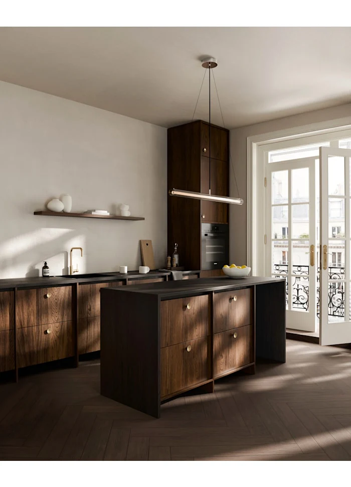 Frame燈具系列的核心理念是「為光線構築框架」。透過結合對比材質的層次,Frame創造出獨特而富有氛圍感的光影體驗。
