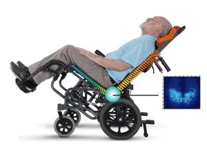 • .先進氣壓式空中傾倒系統,讓照護者可以輕鬆將座椅抬升,空中傾倒0-35度,使得乘坐者能藉由變換坐姿,釋放累積在臀部的壓力。