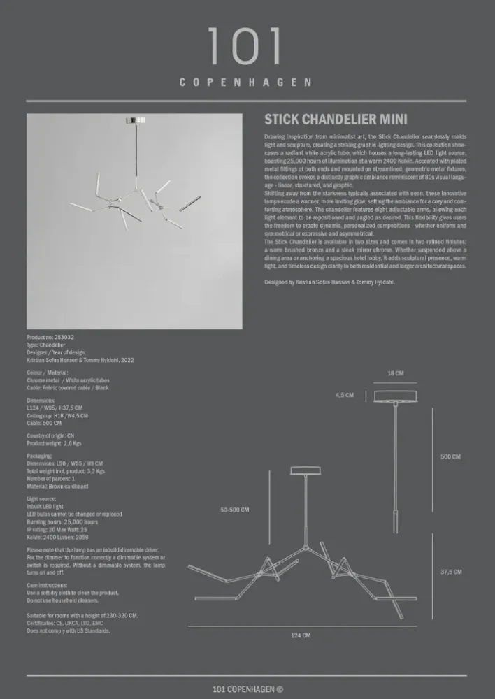 • Stick 枝形吊燈,迷你 – 鉻面(Chrome)