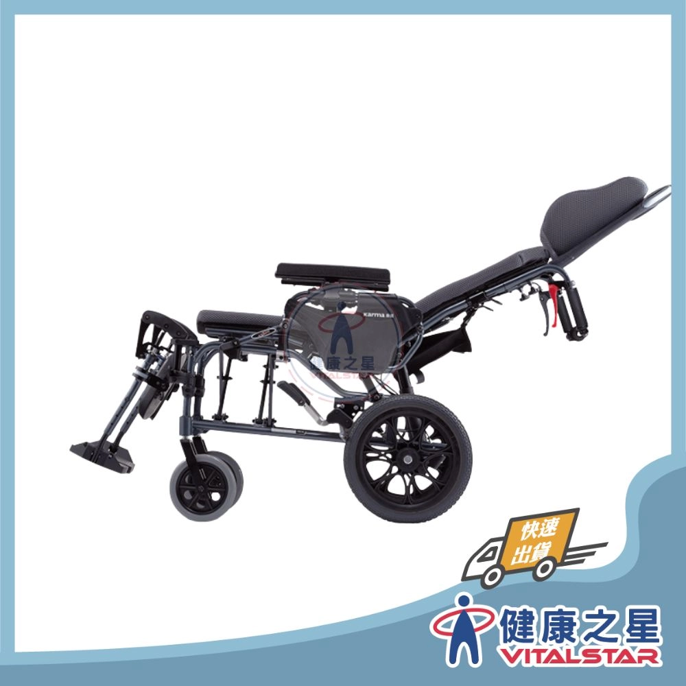 商品"頤辰" YC-800 高背仰躺 輪椅BAB款 深紅色/藍色 (中輪/小輪)