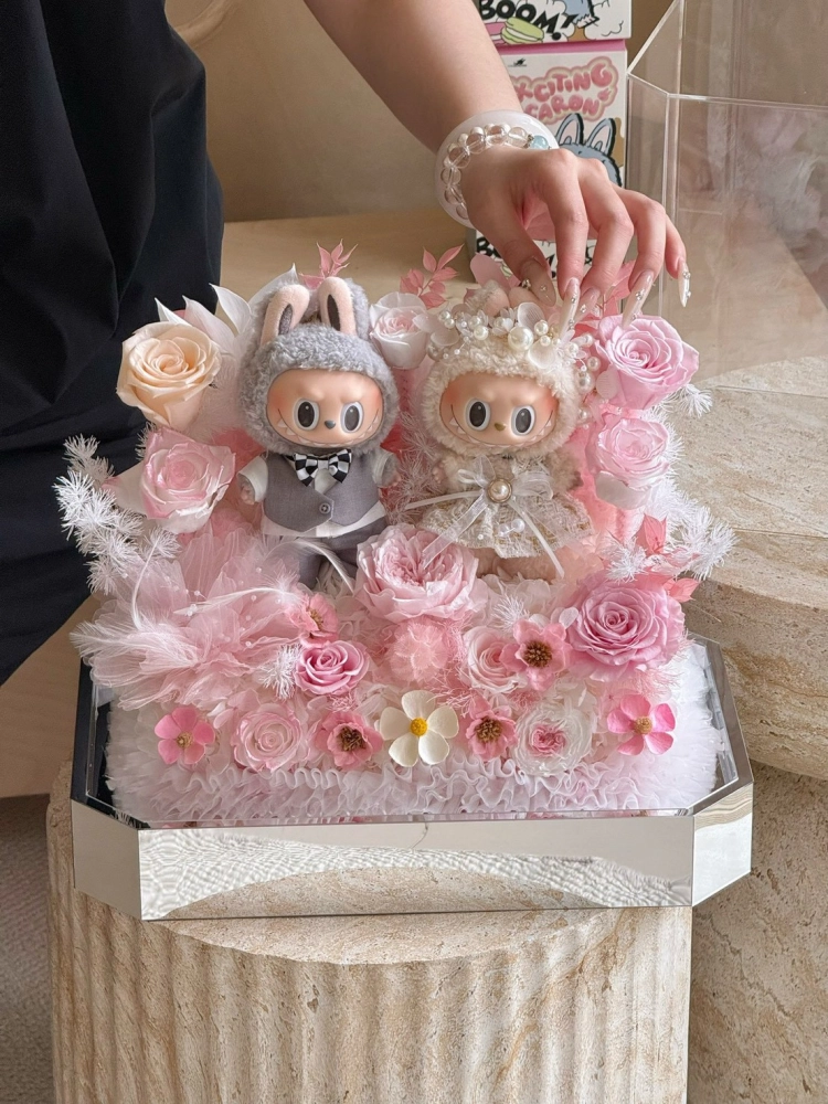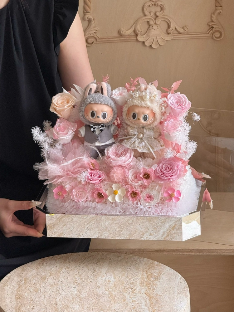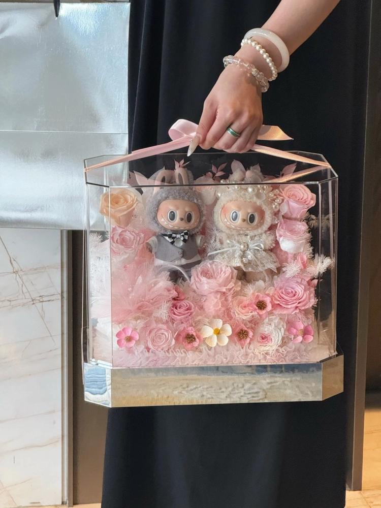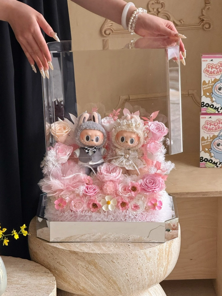 一盒永不凋謝的浪漫,當玩偶遇見花藝,連空氣都變成了粉紅色,今天,讓愛住進花園裡。