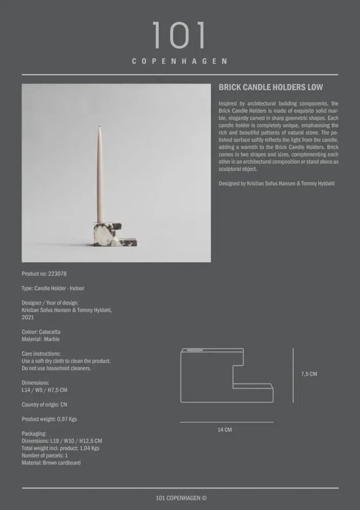 受建築構件的啟發,由精緻的實心大理石製成,優雅地雕刻成尖銳的幾何形狀。每個燭台都是獨一無二的,突出了天然石材豐富而美麗的圖案。拋光表面柔和地反射燈泡的光線,為燭台增添了溫暖。燭台有兩種形狀和尺寸,在建築組合中相互補充,或單獨作為雕塑燈飾。