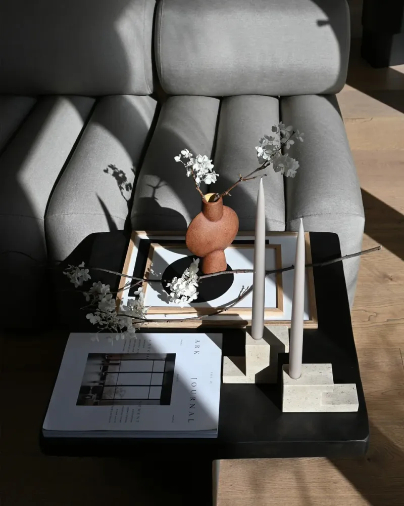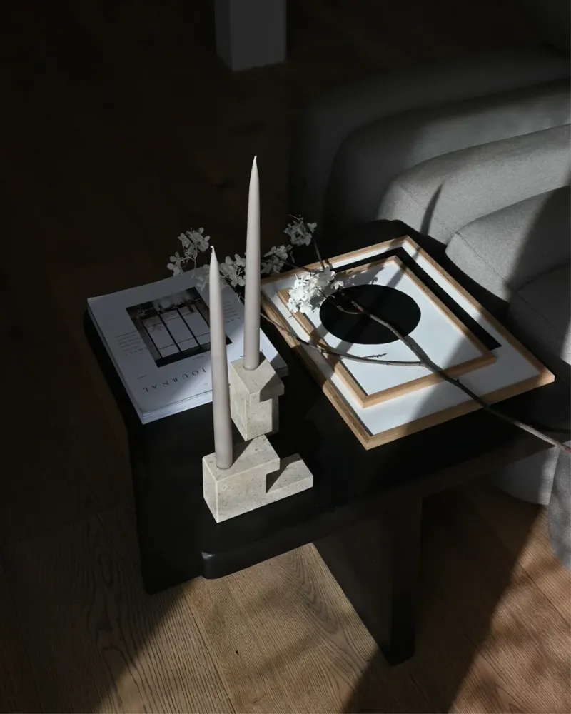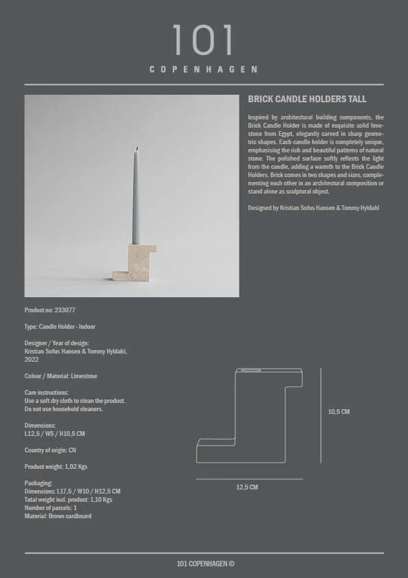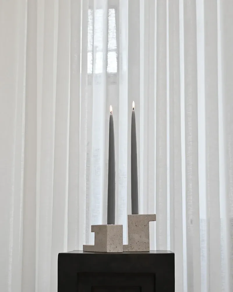 受建築構件的啟發,由來自埃及的精緻實心石灰石製成,優雅地雕刻成尖銳的幾何形狀。每個燭台都是獨一無二的,突出了天然石材豐富而美麗的圖案。拋光表面柔和地反射燈泡的光線,為燭台增添了溫暖。該系列提供兩種形狀和尺寸,在建築組合中相互補充,或單獨作為雕塑燈飾。