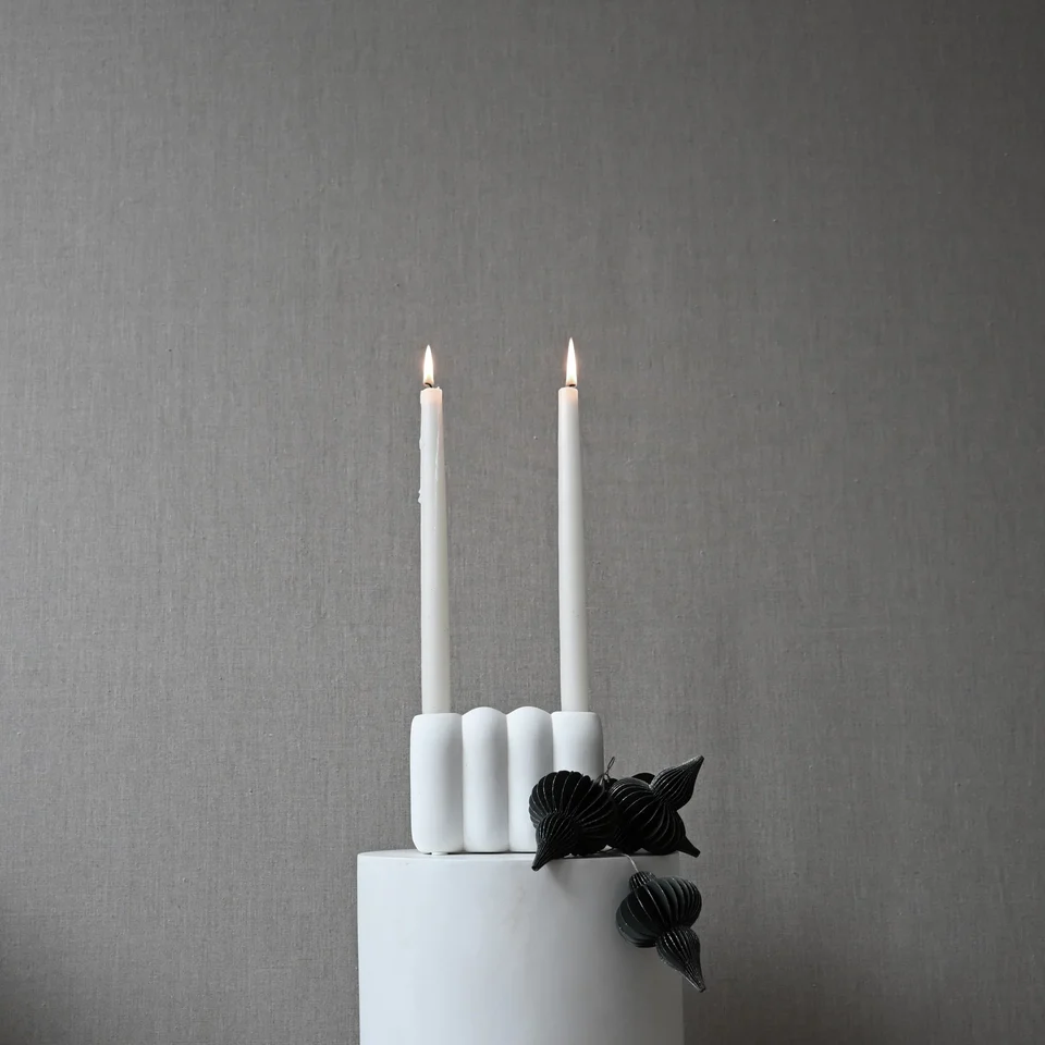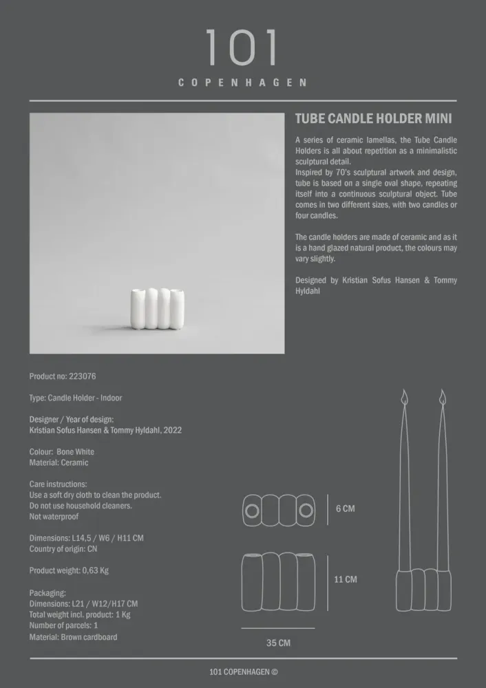 受 70 年代雕塑藝術品和設計的啟發,底部為單個橢圓形,重複自身成為一個連續的雕塑藝術品。管狀燭台有兩種不同的尺寸,分別為兩根蠟燭或四根蠟燭。