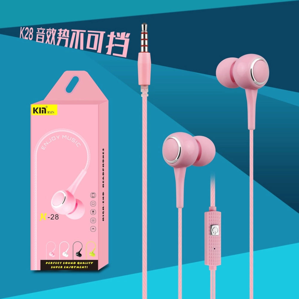 【線控耳機】K-28 3.5mm 時尚 入耳 通用帶麥線控耳機