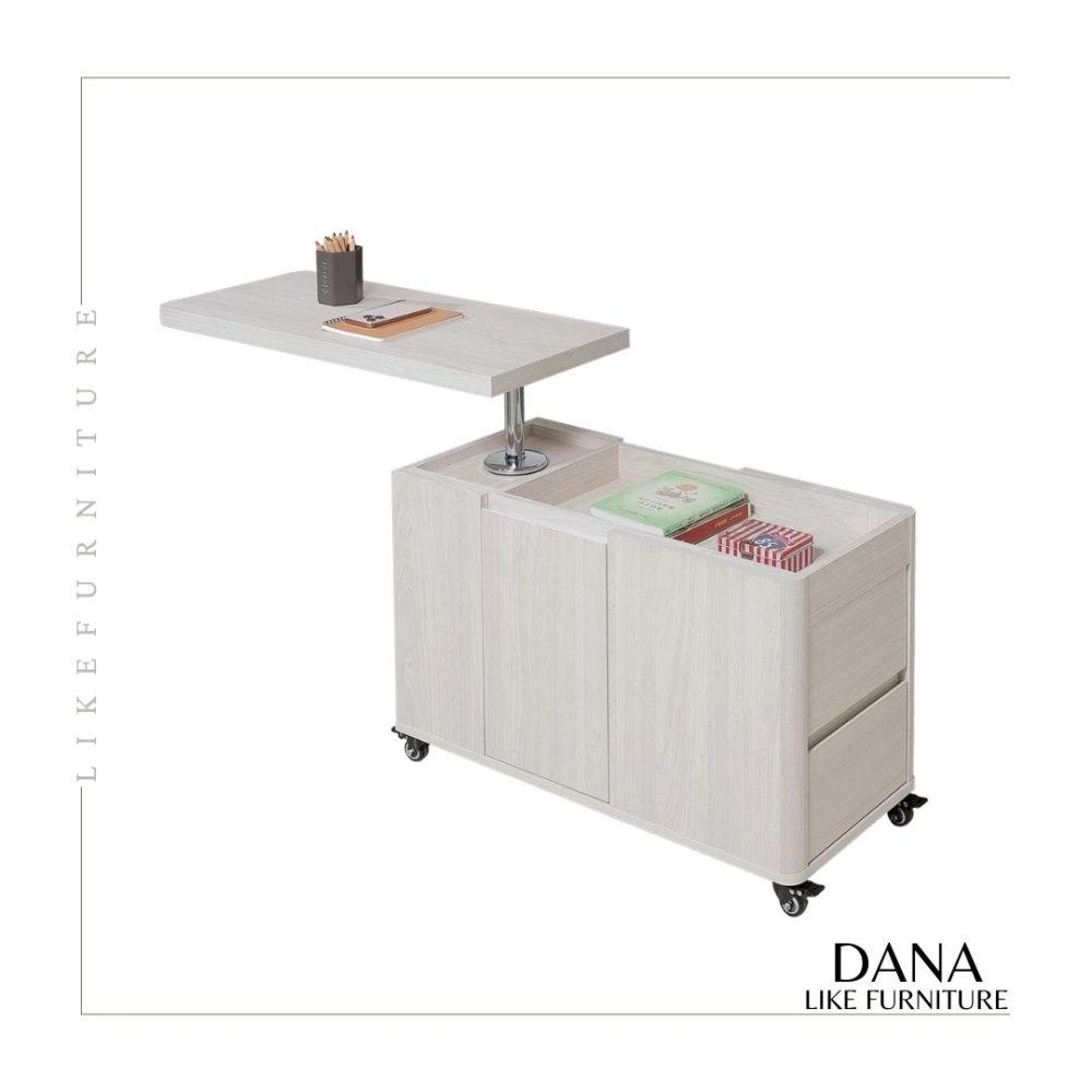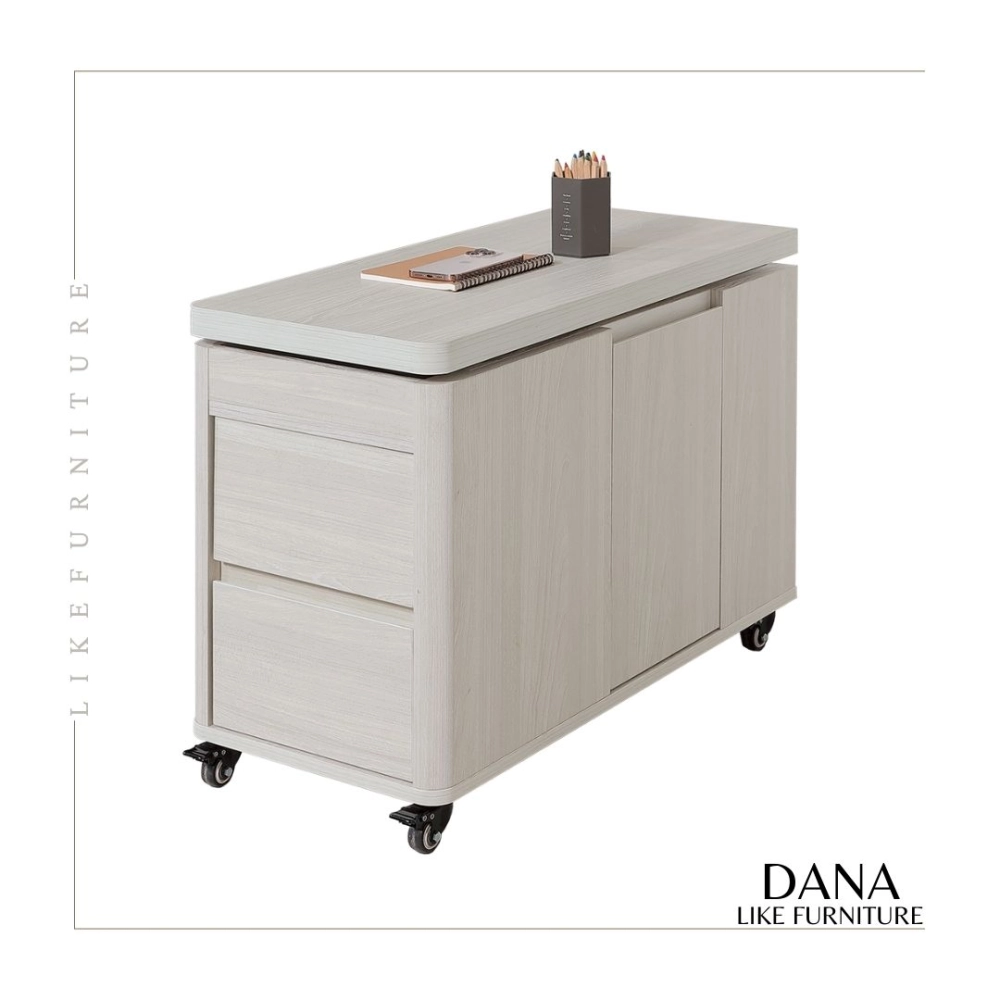 正面兩抽,左右開門 / 桌面可升降、旋轉