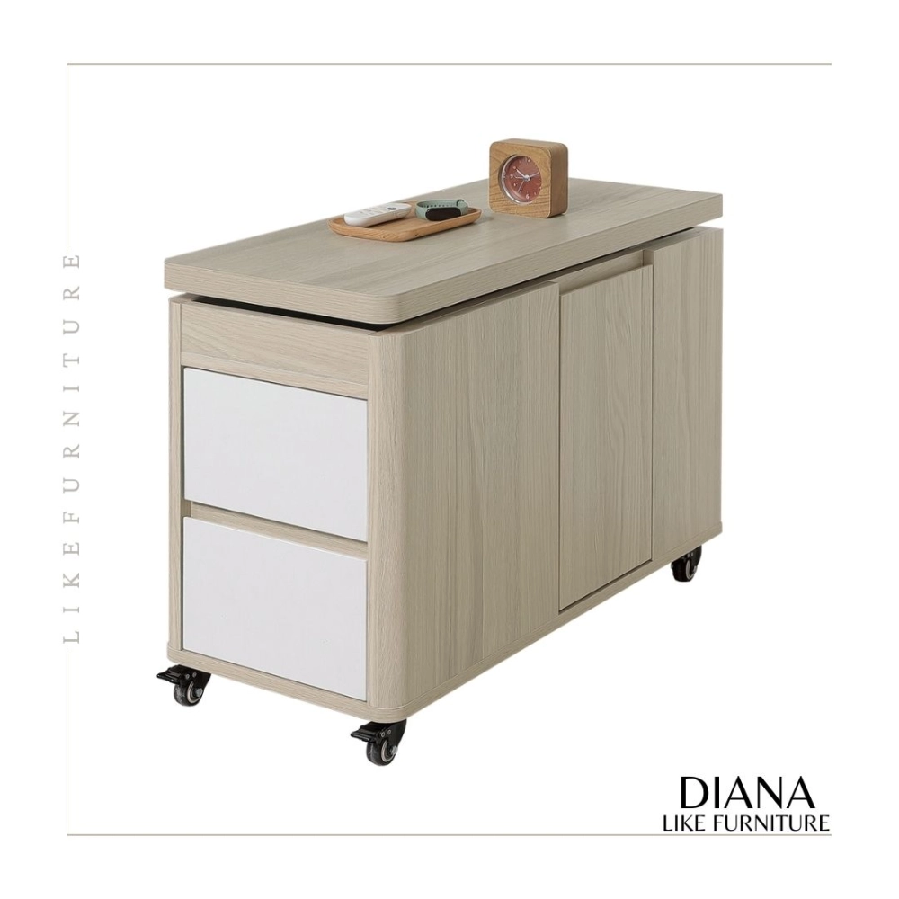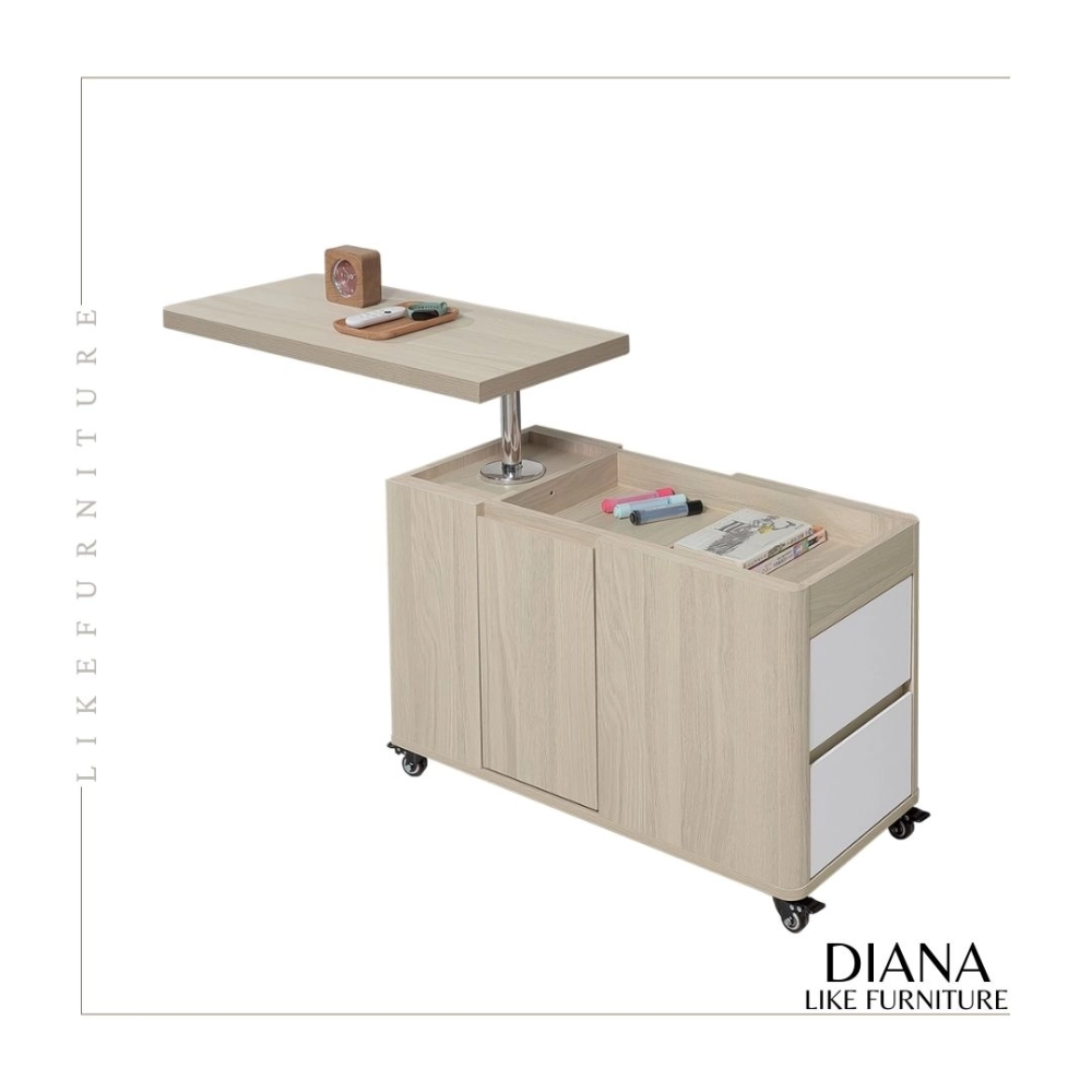 正面兩抽,左右開門 / 桌面可升降、旋轉