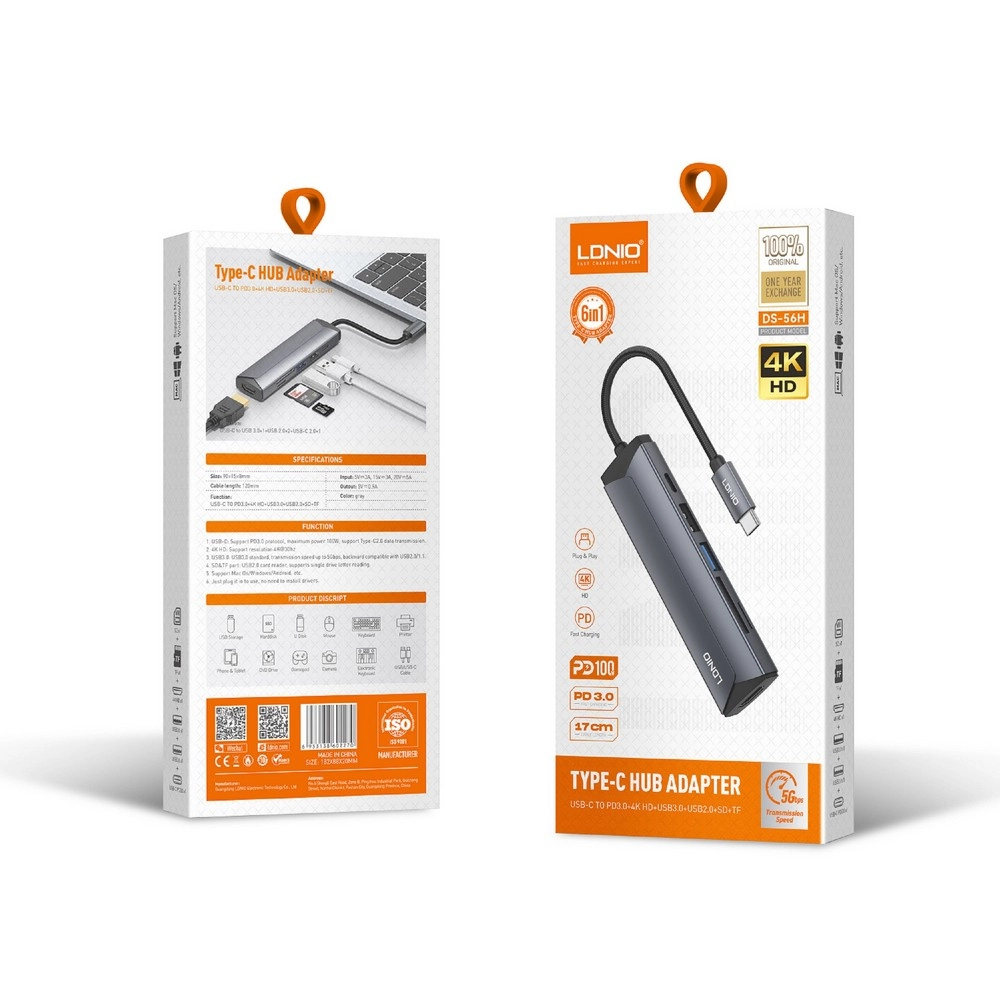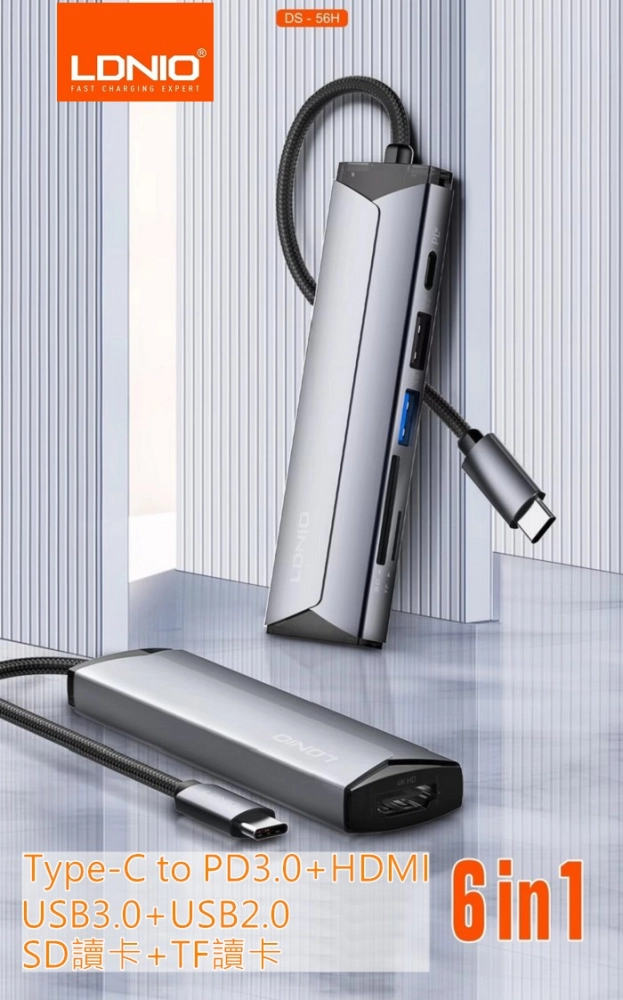 LDNIO六合一TypeC充電傳輸集線器(DS-56H)