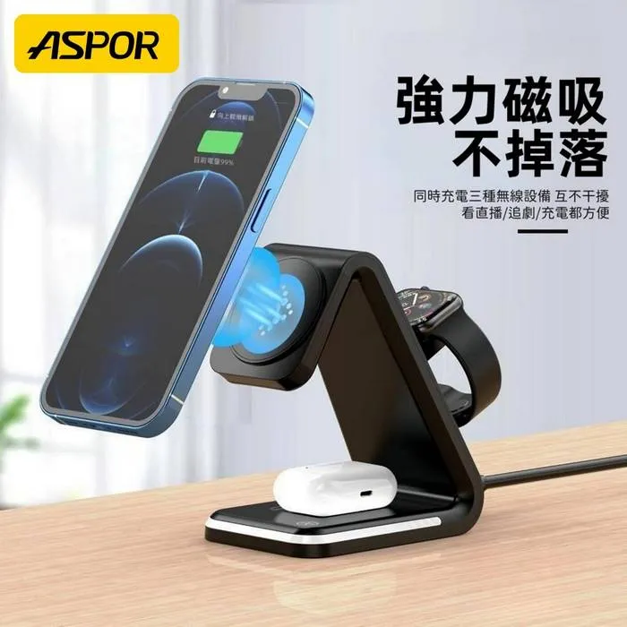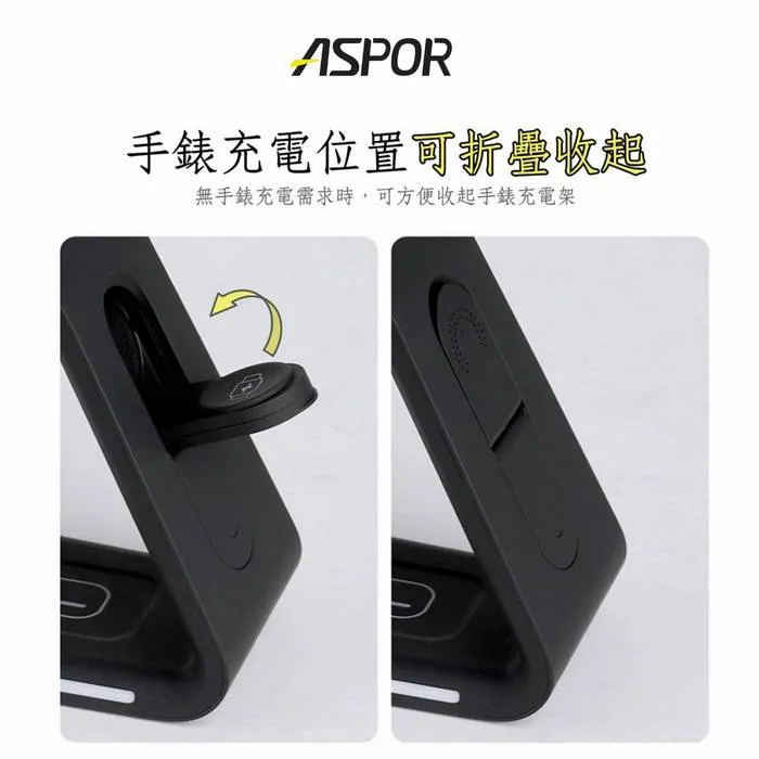 ASPOR Magsafe 急速15W 四合一磁吸無線充電座 夜燈/iPhone/Watch/Airpods