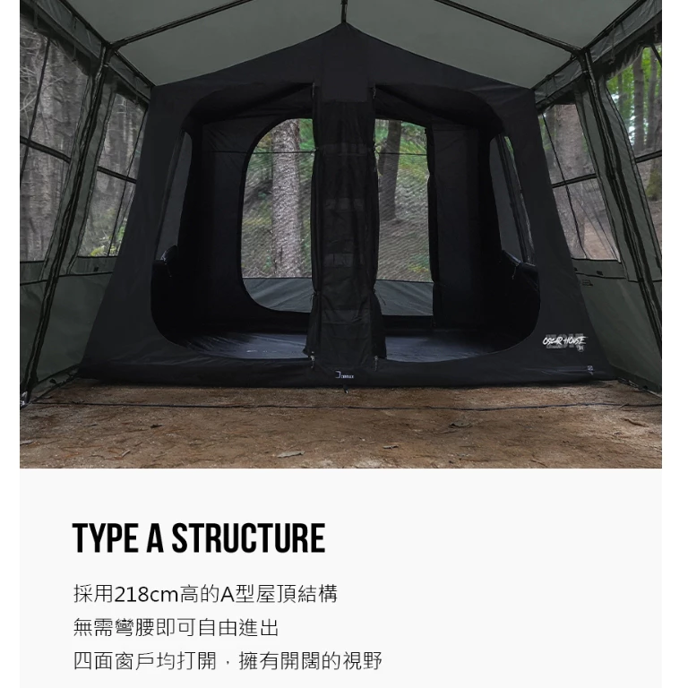 🔹採用218cm高的A型屋頂結構,無需彎腰即可自由進出