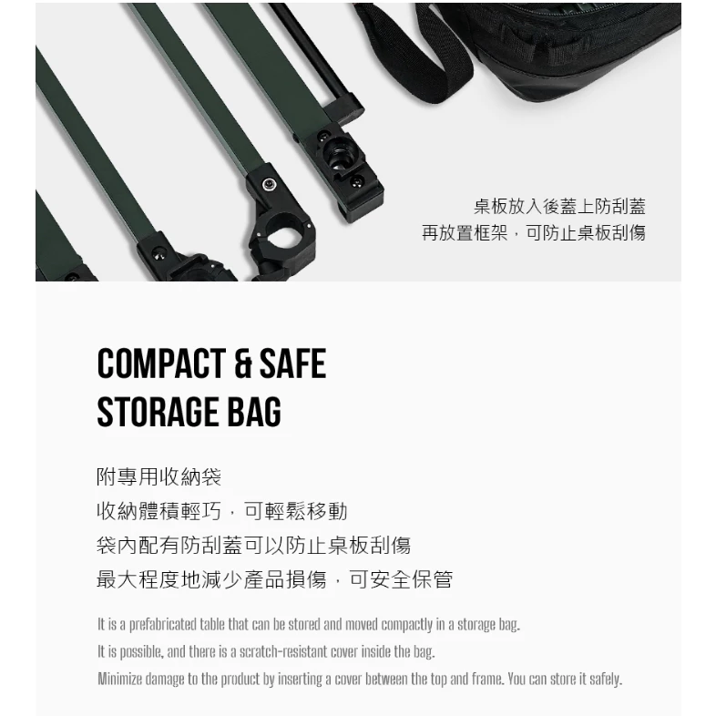 🔹採用堅固的鋁合金製成,桌板和框架分開收納,收納體積輕巧