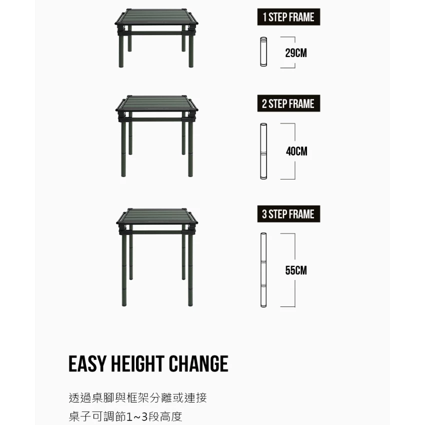 🔹透過桌腳與框架分離或連接,桌子可調節29/40/55公分高度