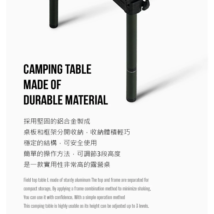 🔹採用堅固的鋁合金製成,桌板和框架分開收納,收納體積輕巧