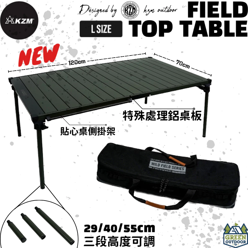 KAZMI KZM 工業風輕量蛋捲桌【綠色工場】露營桌 鋁合金桌 摺疊收納 附收納袋 摺疊桌