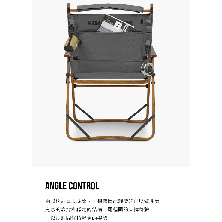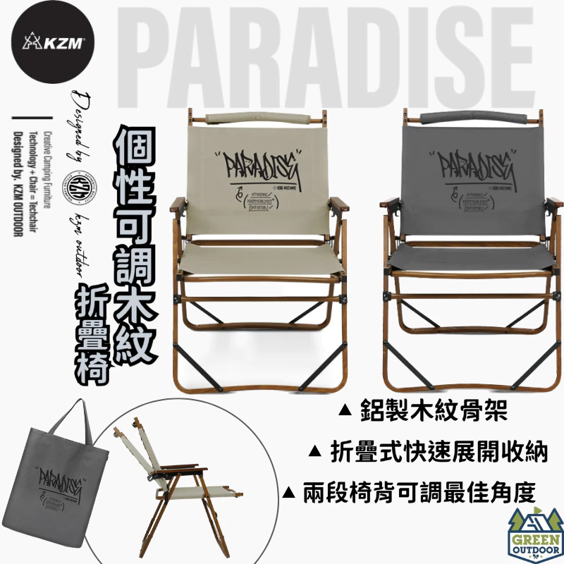 KAZMI KZM 個性可調木紋折疊椅【綠色工場】露營椅 折疊椅 克米特椅 附收納袋 可調整椅背 休閒椅
