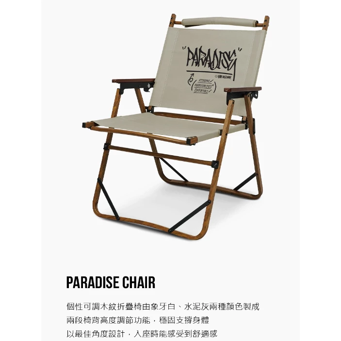 🔹個性可調木紋折疊椅由象牙白、水泥灰兩種顏色製成