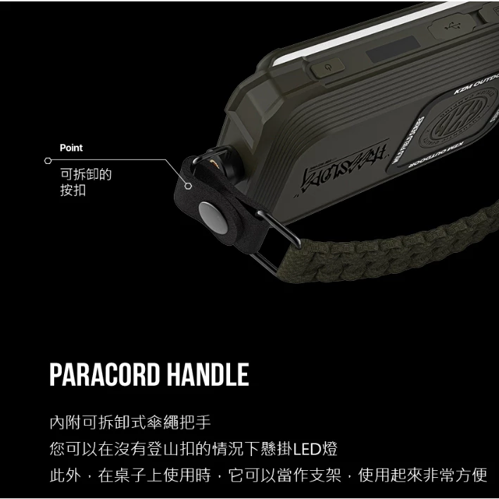 🔹內附可拆卸式傘繩把手,您可以在沒有登山扣的情況下懸掛