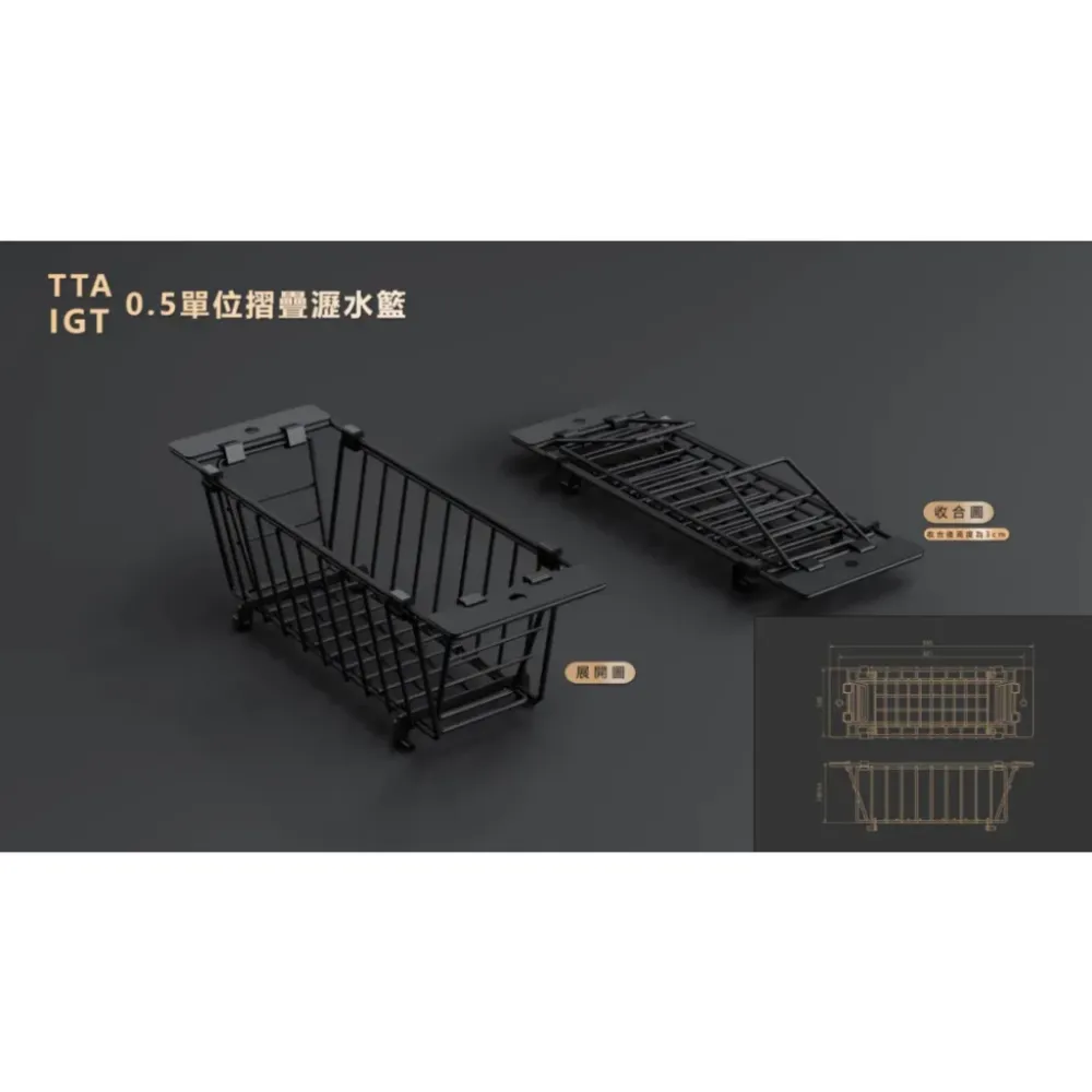 D.U.C IGT/TTA系統 0.5單位 折疊瀝水籃【綠色工場】台灣製 快速展開 碗籃 消光黑 半單位