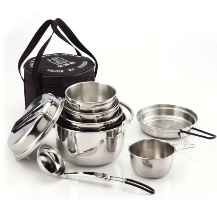 文樑 頂級不銹鋼精品組【綠色工場】台灣製 露營5入鍋具組 湯碗 不鏽鋼鍋 飯碗 鍋具組 套鍋組 附贈湯杓 ST-2020