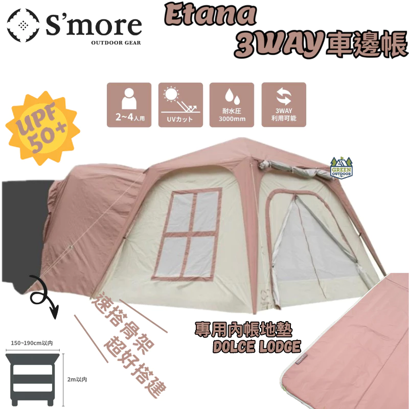 S'more Etana 3WAY車尾帳/車邊帳【綠色工場】車後帳 車用客廳帳 車宿車泊 快速搭建 可獨立使用