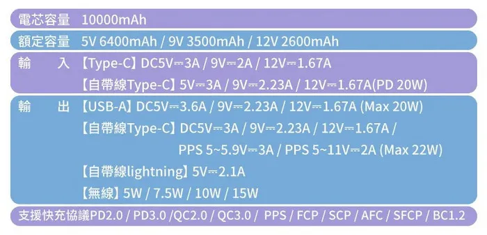 商品HANG 20000 PD12(自帶雙線)22.5W行動電源
