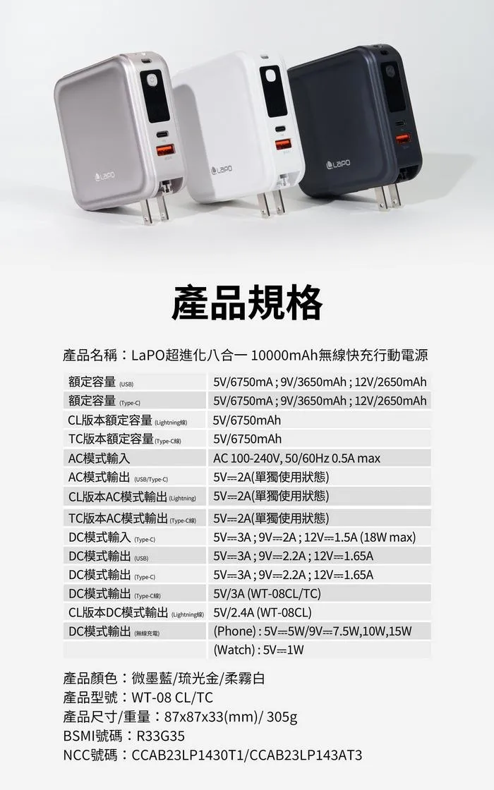 商品LaPO Qi2 15W磁吸無線充行動電源
