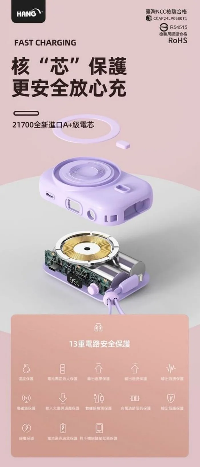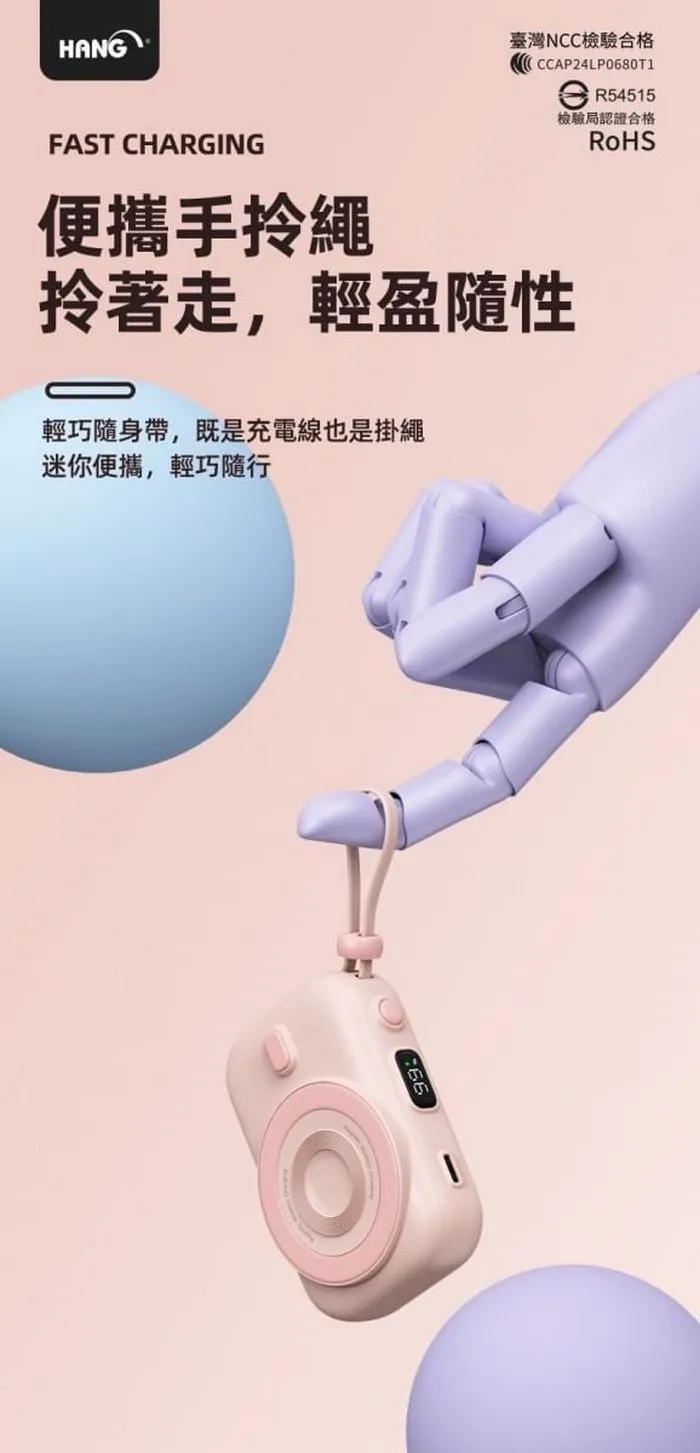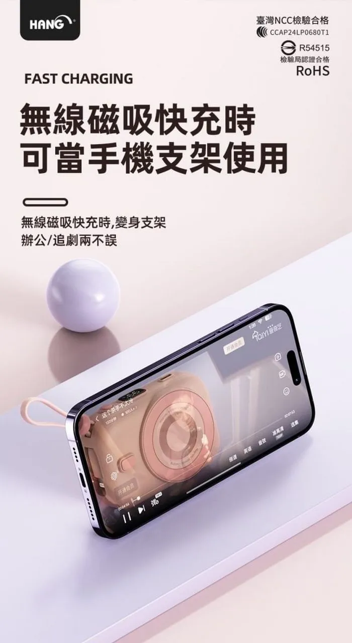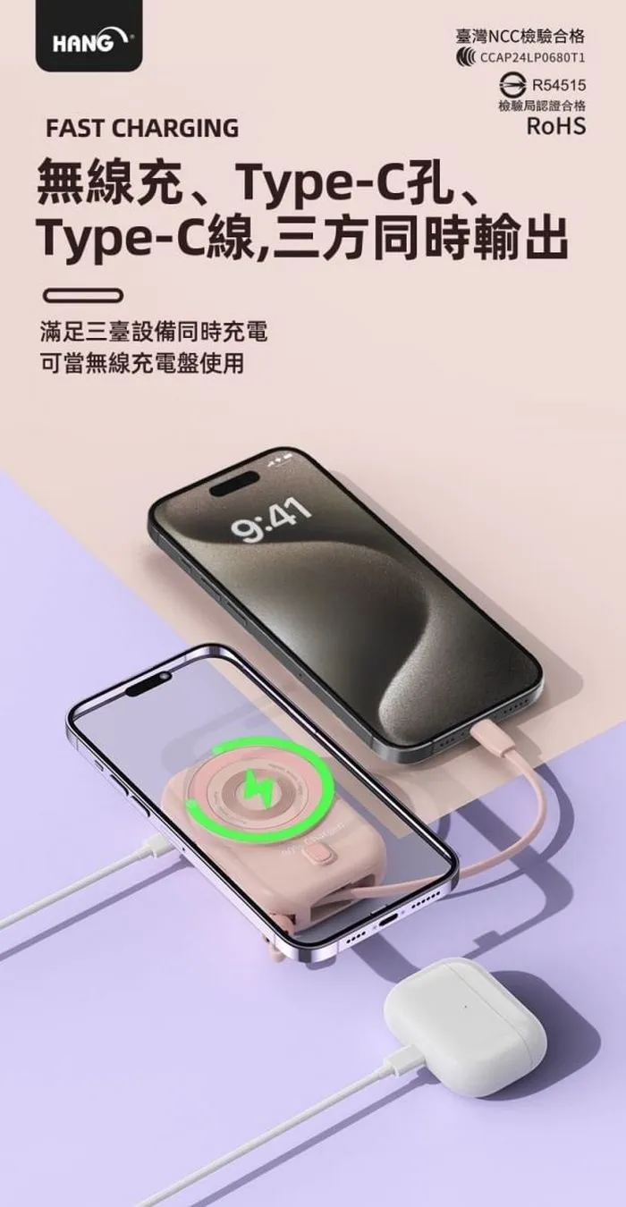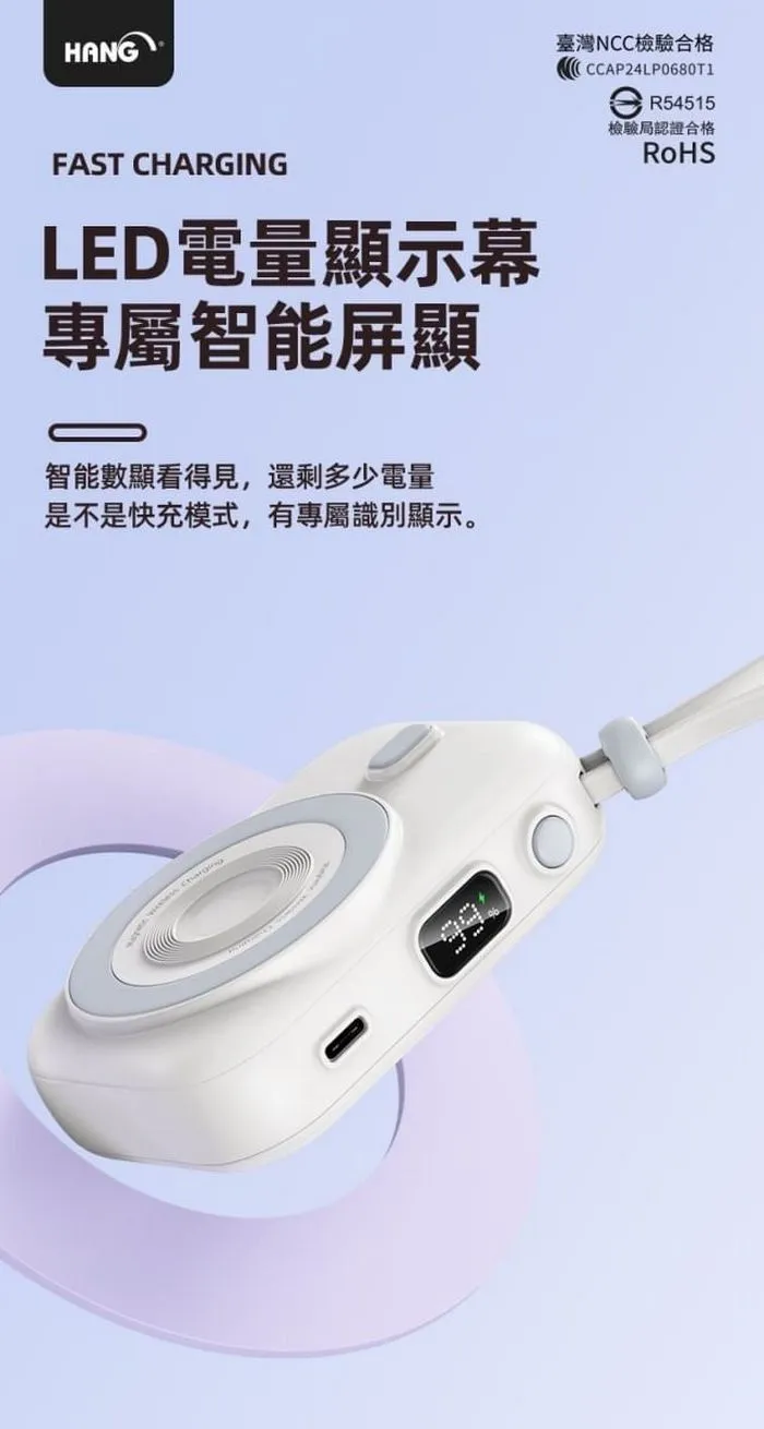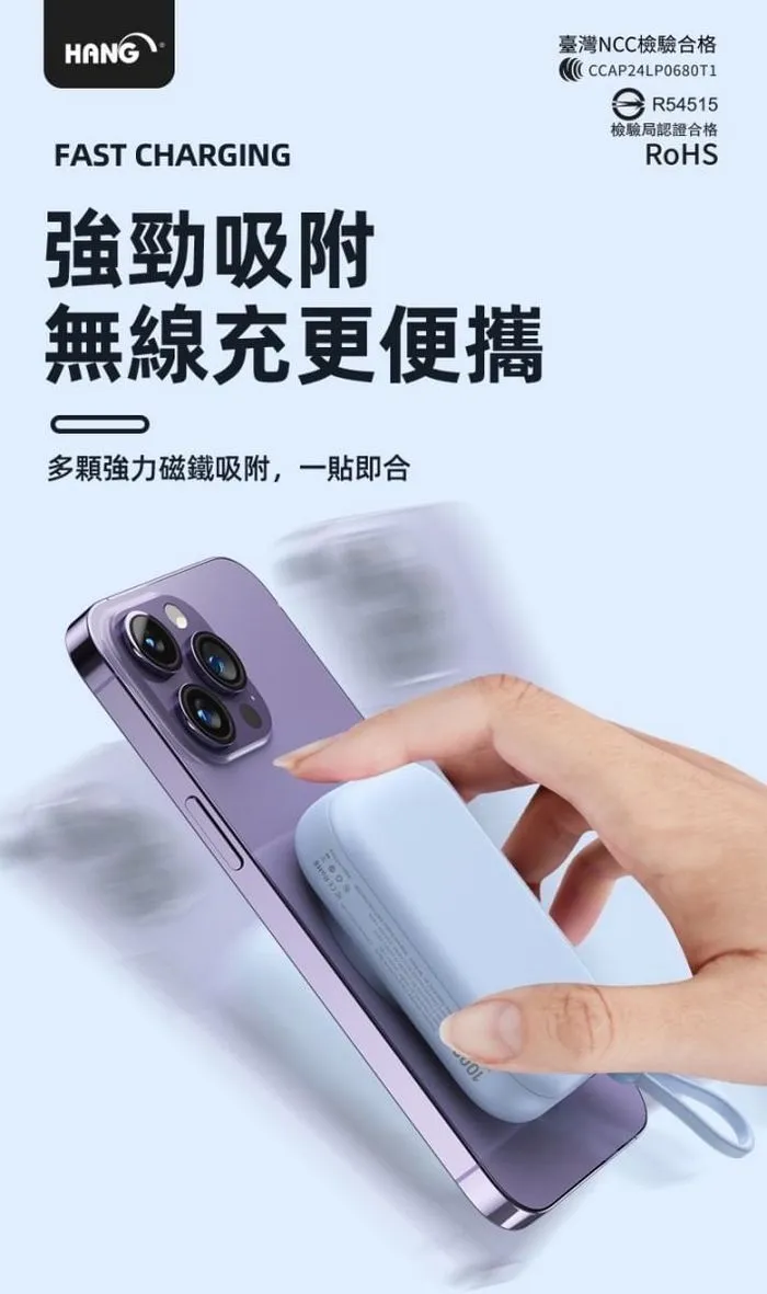 • HANG-PDC無線磁吸自帶線10000mAh行動電源