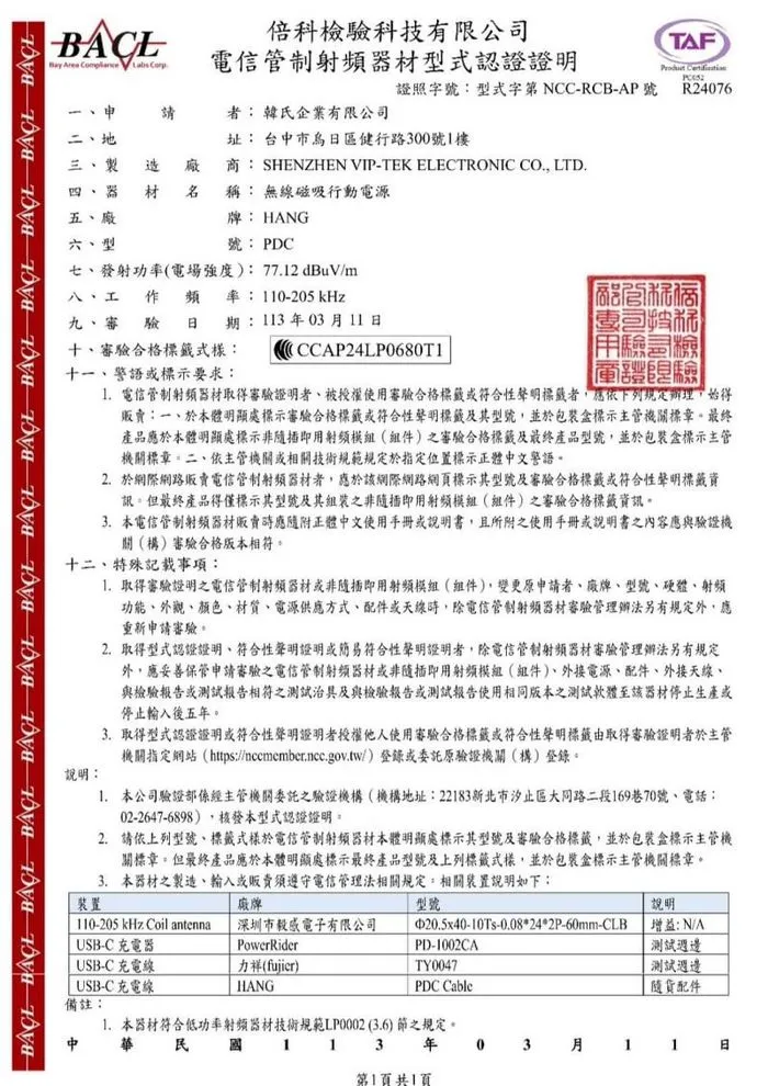 NCC認證:CCAP24LP0680T1