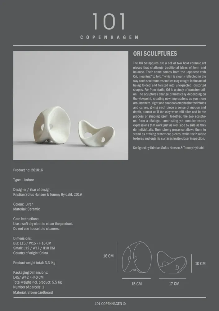Ori 雕塑擺飾是一組由兩件大膽陶瓷藝術品組成的雕塑作品,挑戰了人們對於形式與平衡的傳統想像。