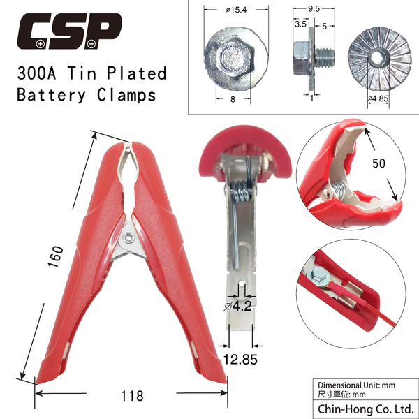 商品【CSP】65A鍍錫中夾 / 一對 / 正極.負極 / 紅黑夾 / 電瓶夾