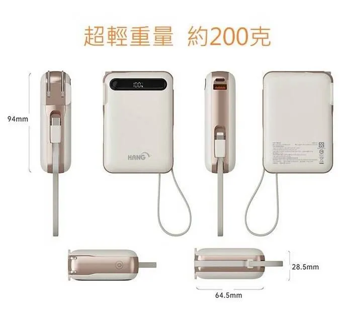 HANG-AC2自帶插頭10000mAh行動電源(BSMI+3C認證)