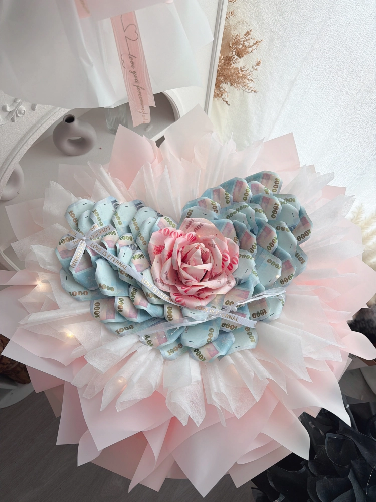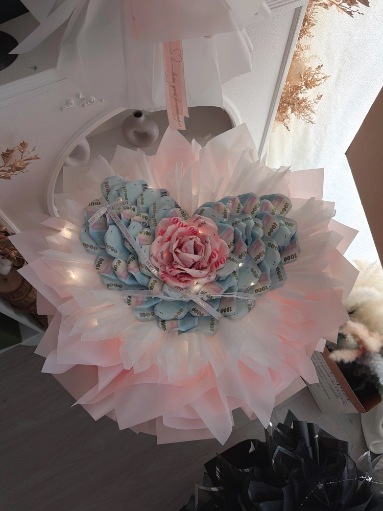 愛心山茶花有錢花-(27張千元.10張百元面額鈔票=28000現金(可以更換鈔票面額)+工資$2700,總金額$30700