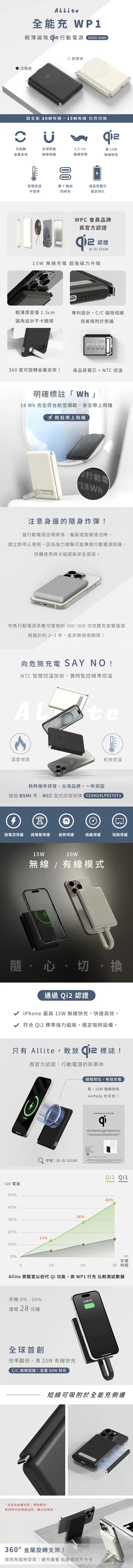 商品MiniQ MD-BP075 Qi 15W自帶雙線數顯磁吸無線閃充行動電源