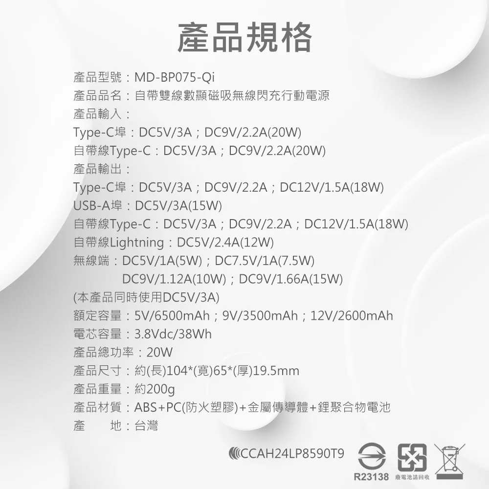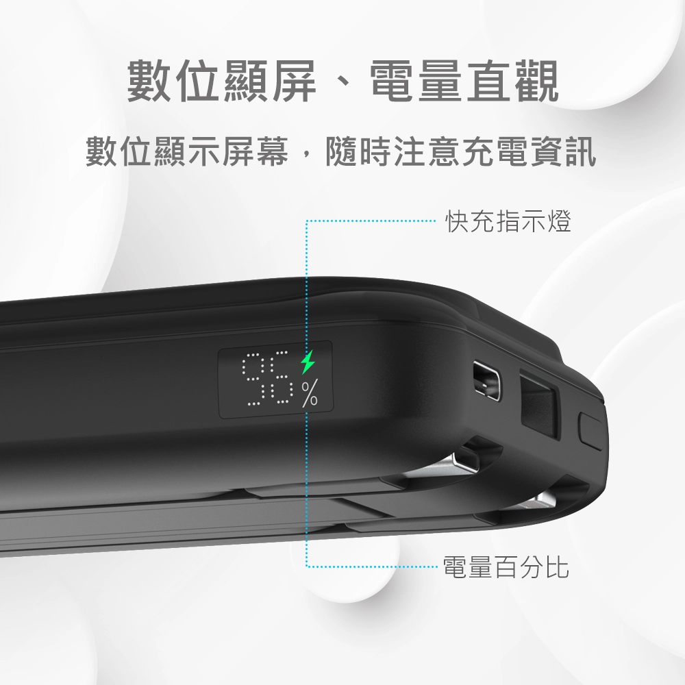 商品MINIQ 數顯鋁合金/10000mAh/15W磁吸式無線閃充行動電源