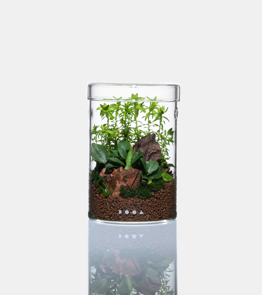 該系列玻璃瓶採用與 ADA 魚缸相同的精緻玻璃工藝,其設計核心在於透過專用玻璃蓋與瓶身側面的通風孔,在維持瓶內濕度的同時確保空氣流通。