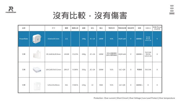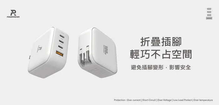 【Power Rider】PD-1002CA 100W GaN氮化鎵4孔折疊快速充電器