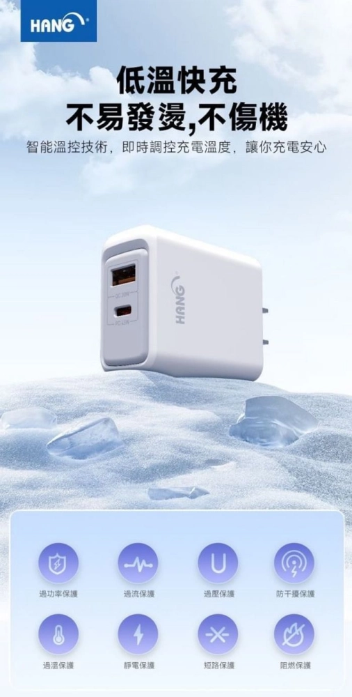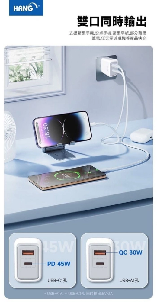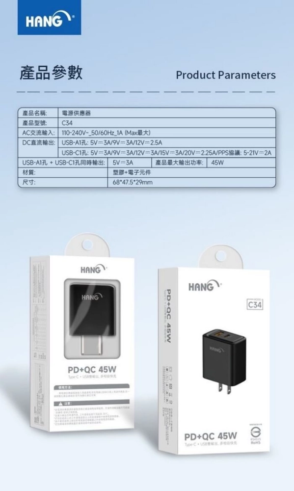 • (PD+QC) C34 快速充電器45W(HANG)