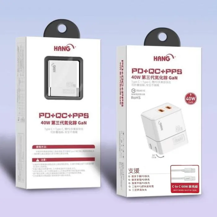 商品(PD+QC+PPS) C68 雙C口(摺疊)40W 氮化鎵 快速閃充電器(H