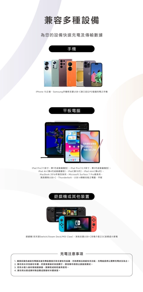 ・微光 LED 充電狀態燈 ・USB 2.0 / 480 Mbps 資料傳輸 ・通過 SGS 抗菌測試 / 彎折30,000次測試 / 插拔10,000次測試 ・原廠12個月保固