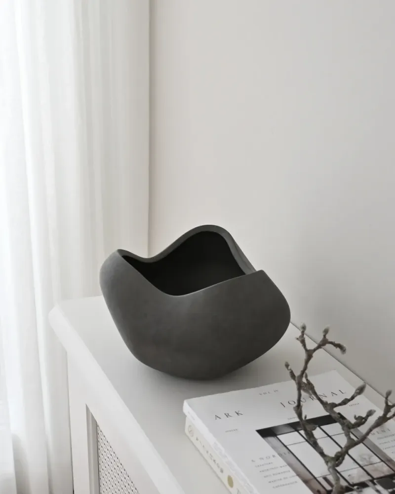 曲線碗以陶瓷工藝為靈感,強調陶土的自然質感與材質特性。碗的設計特徵是有意的不規則形狀與表面,展現了手工製作的獨特美感。豐滿的造型與深度適合多種儲存需求,也可作為單獨擺放的裝飾品或乾燥花器。