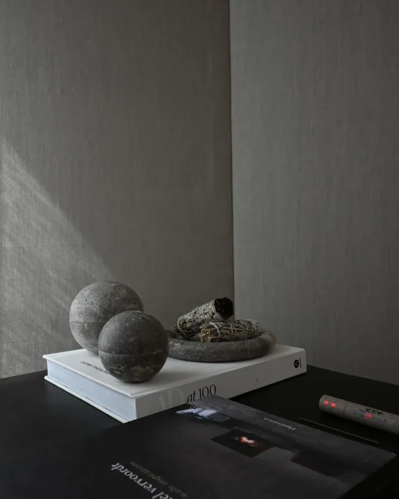 以精美的銀灰洞石製成,包括多種尺寸和形狀的罐子和托盤,結合幾何造型與石材的天然紋理,呈現極簡設計與獨特質感的完美平衡,由熟練工匠精心製作,具備手工質感和耐久性,每件作品均為獨一無二的工藝品。小罐適合用來存放小物或作為裝飾點綴,增添空間優雅,是精緻家居或獨特禮品的理想選擇。
