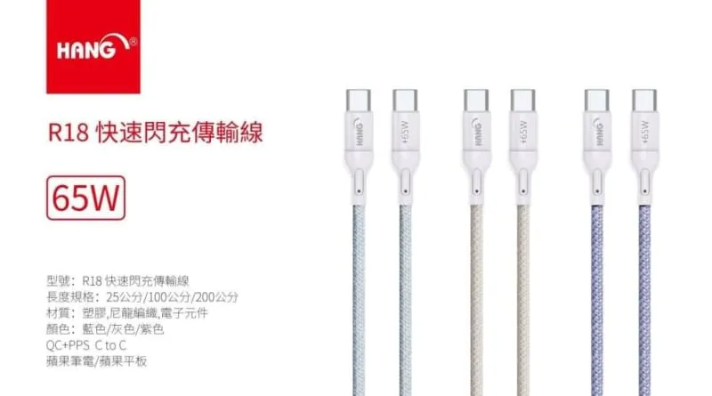 商品黑-HANG R14 AP 3.4A 2米編織線