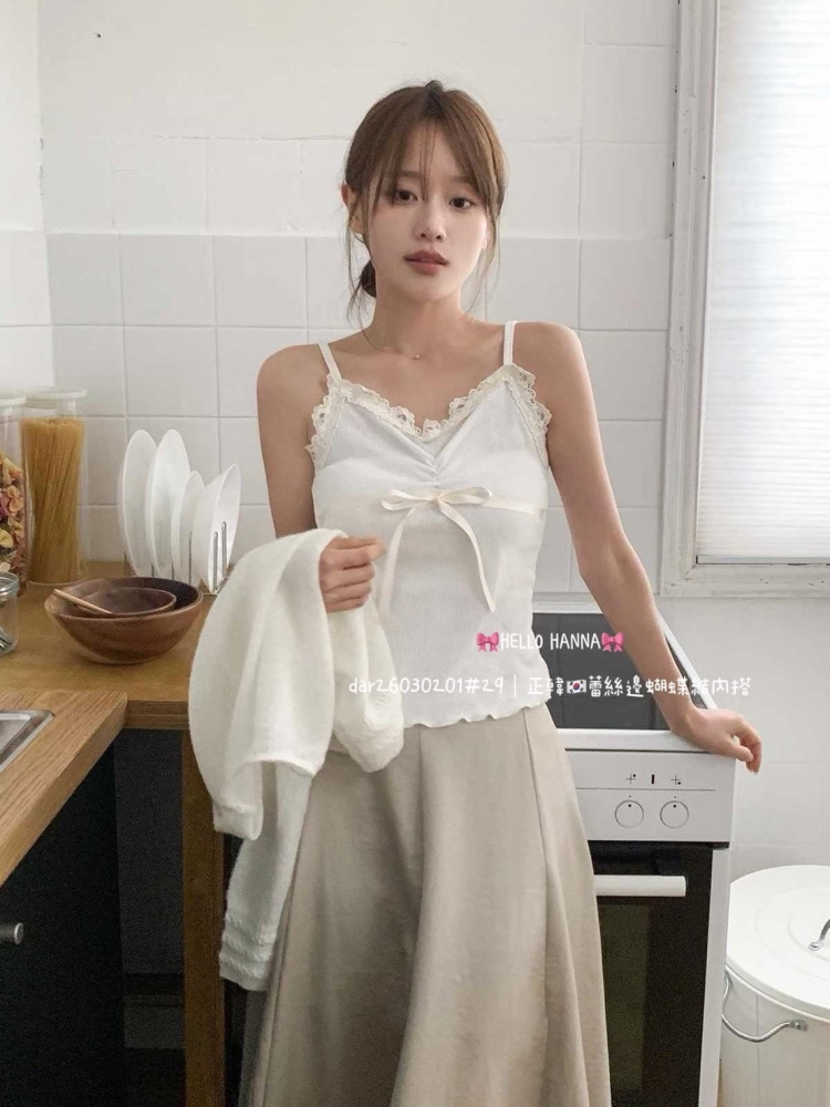 • 正韓蕾絲邊蝴蝶結內搭