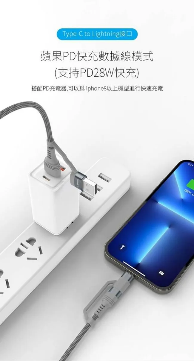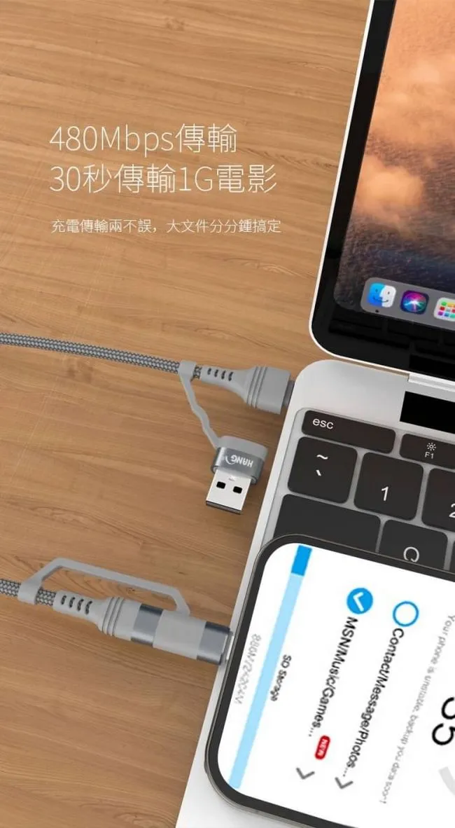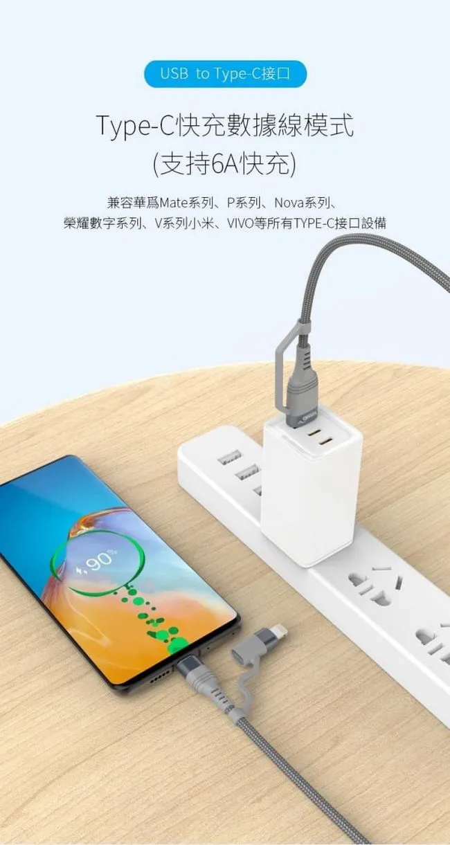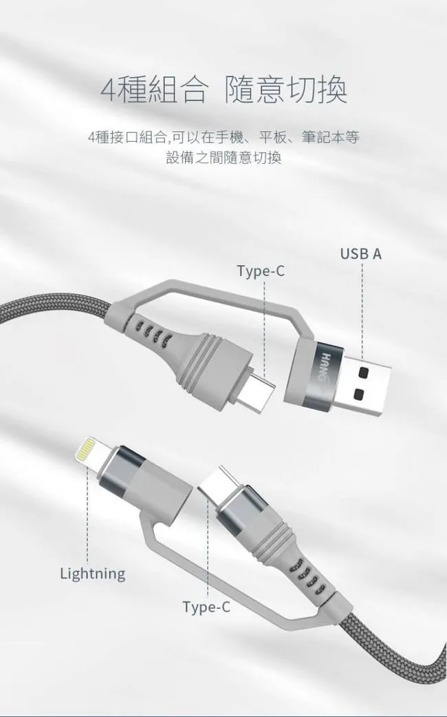 商品白-牛角-LC1編織白線-1米-USB C to TC