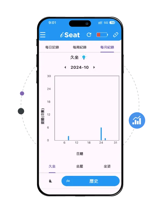 提醒 ✕ 紀錄,雙向掌握坐姿狀況