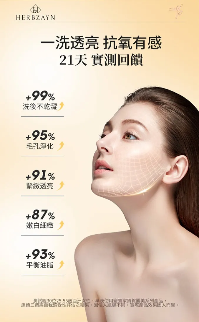 卸妝 x 清潔 x 保養 三效合一洗面乳 抗氧透亮 獨家配方,一洗透亮 抗氧有感 溫和潔淨、抗氧無暇、屏障呵護、水潤透亮 產品不含酒精、環境賀爾蒙、西藥等有害物質,孕媽咪和敏感肌皆可以安心使用