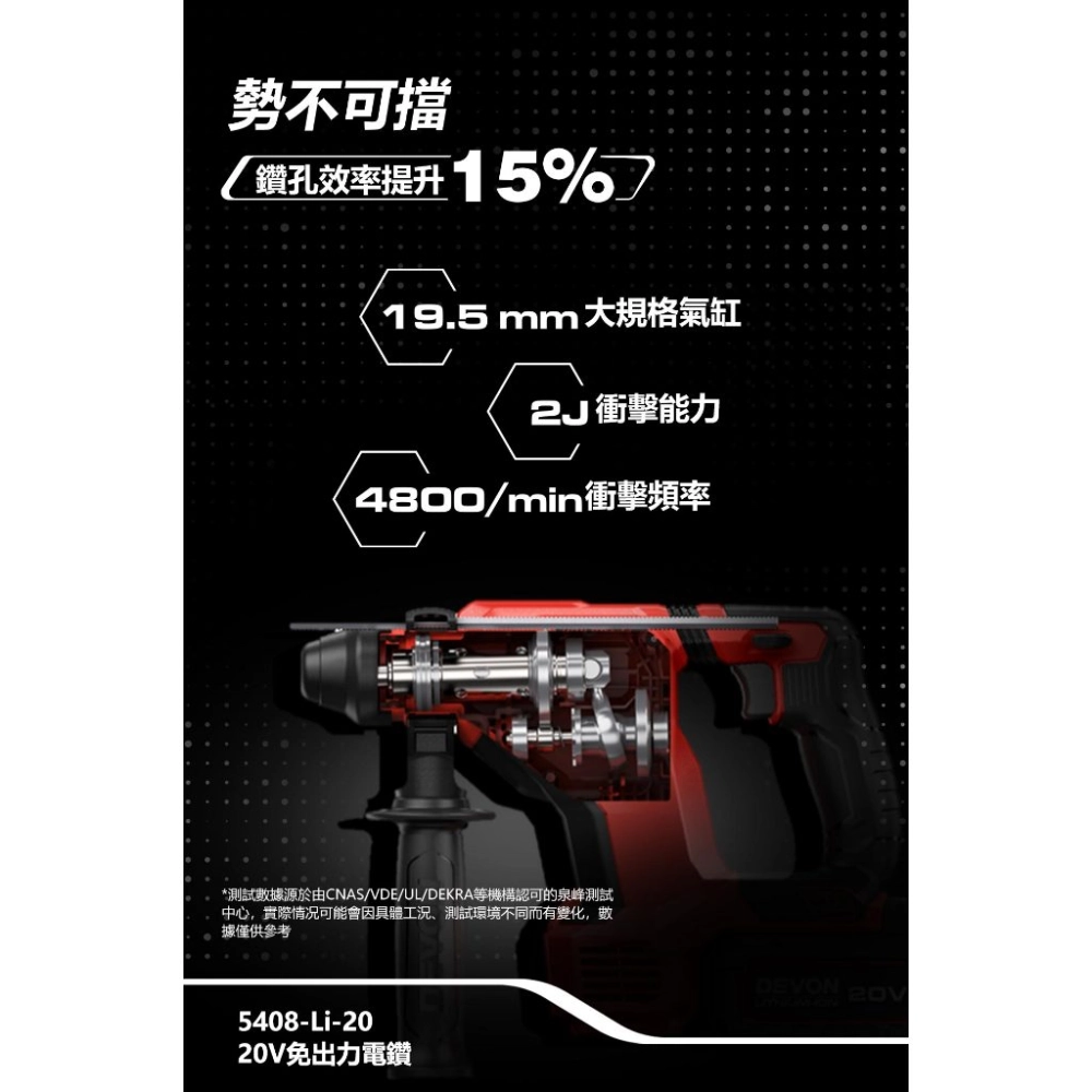 商品【飆破盤】DEVON大有 5401-LI-20RH 20V無刷電鎚鑽 四溝 電動工具 裝潢 水電 工程